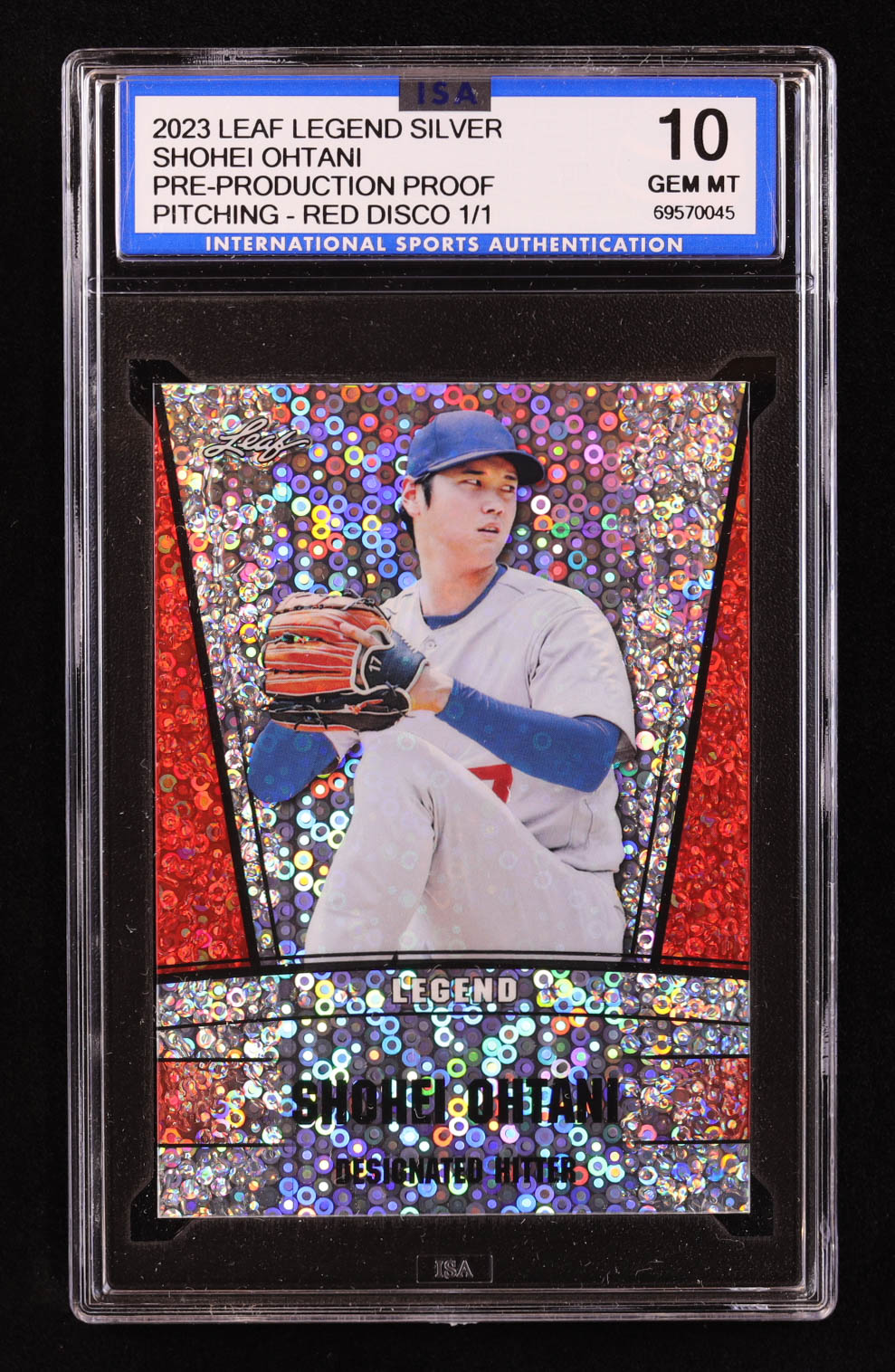 Shohei Ohtani 2023 Leaf Legend Silver Disco Red Pre-Production Proof #NNO #1/1 (ISA 10)
