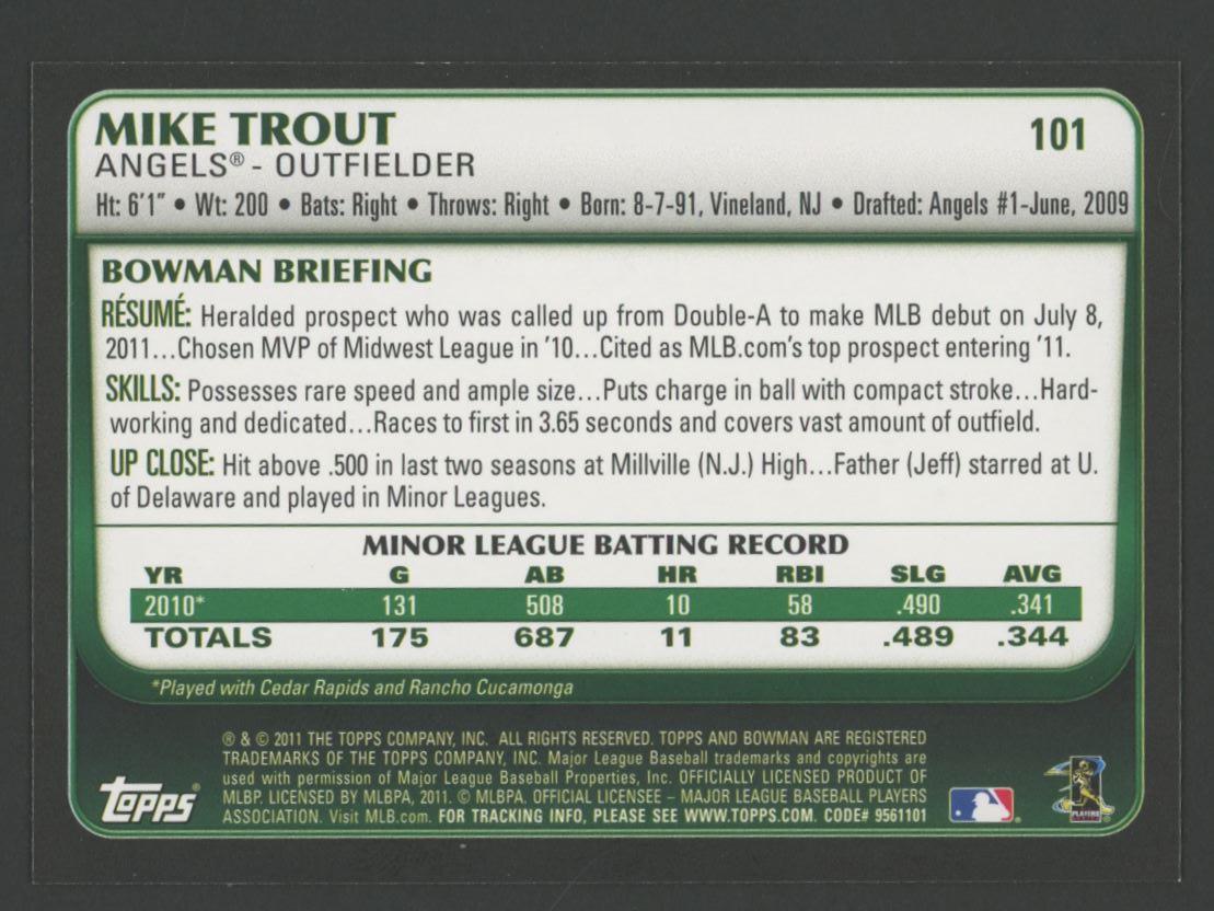 Mike Trout 2011 Bowman Draft #101 RC