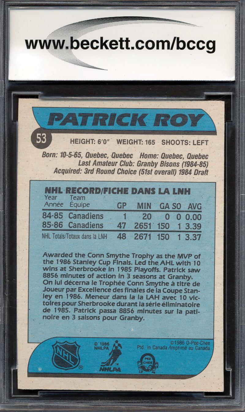 Patrick Roy 1986-87 O-Pee-Chee #53 RC (BCCG 9)