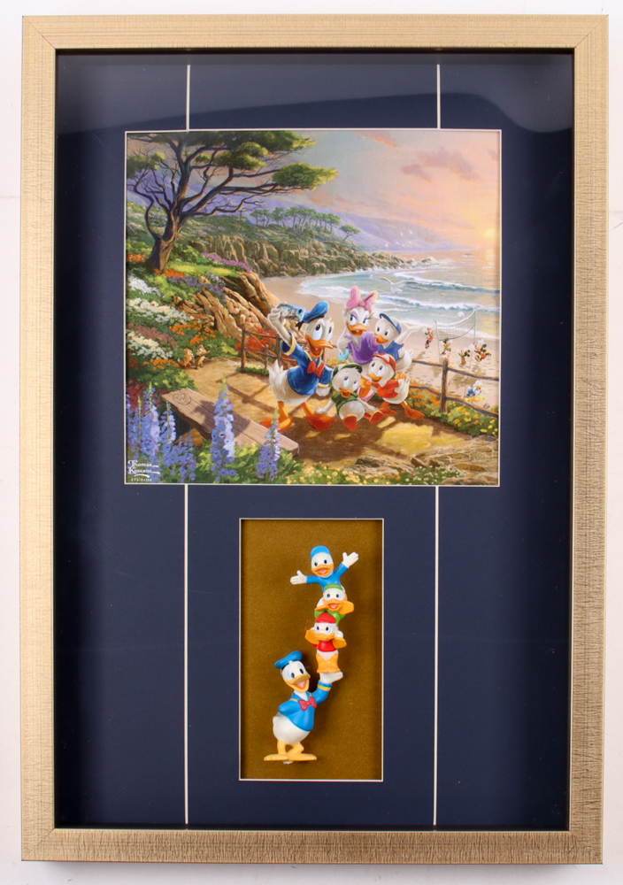 Thomas Kinkade "Donald Duck & Daisy" Custom Shadowbox Print Display with Figurine Set