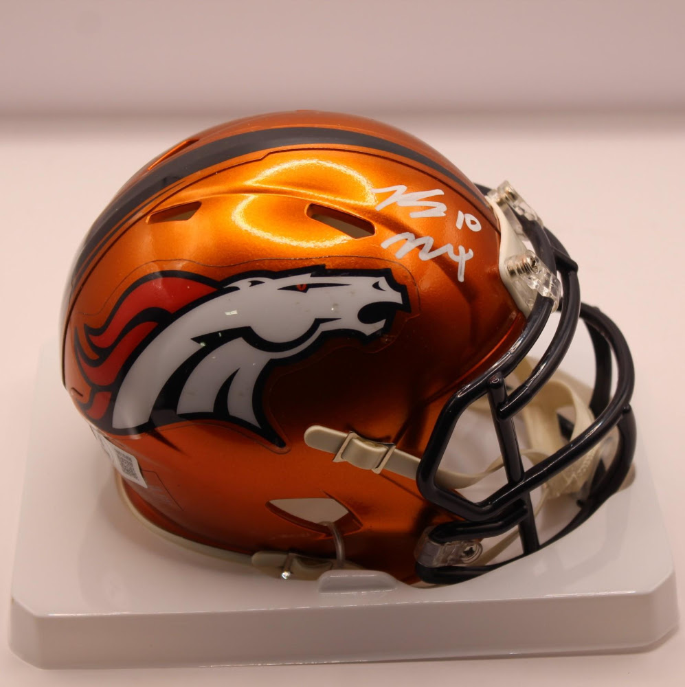 Riddell Denver Broncos flash alternate speed mini helmet has been hand-signed by Bo Nix.