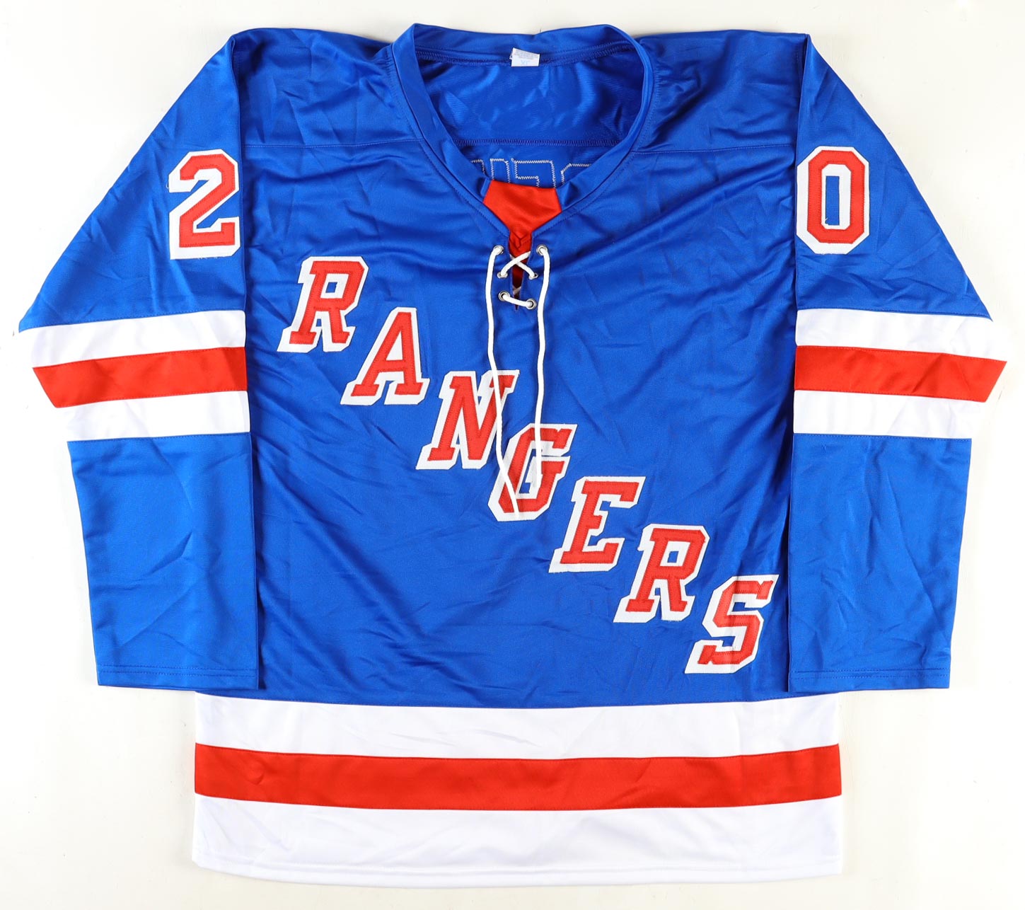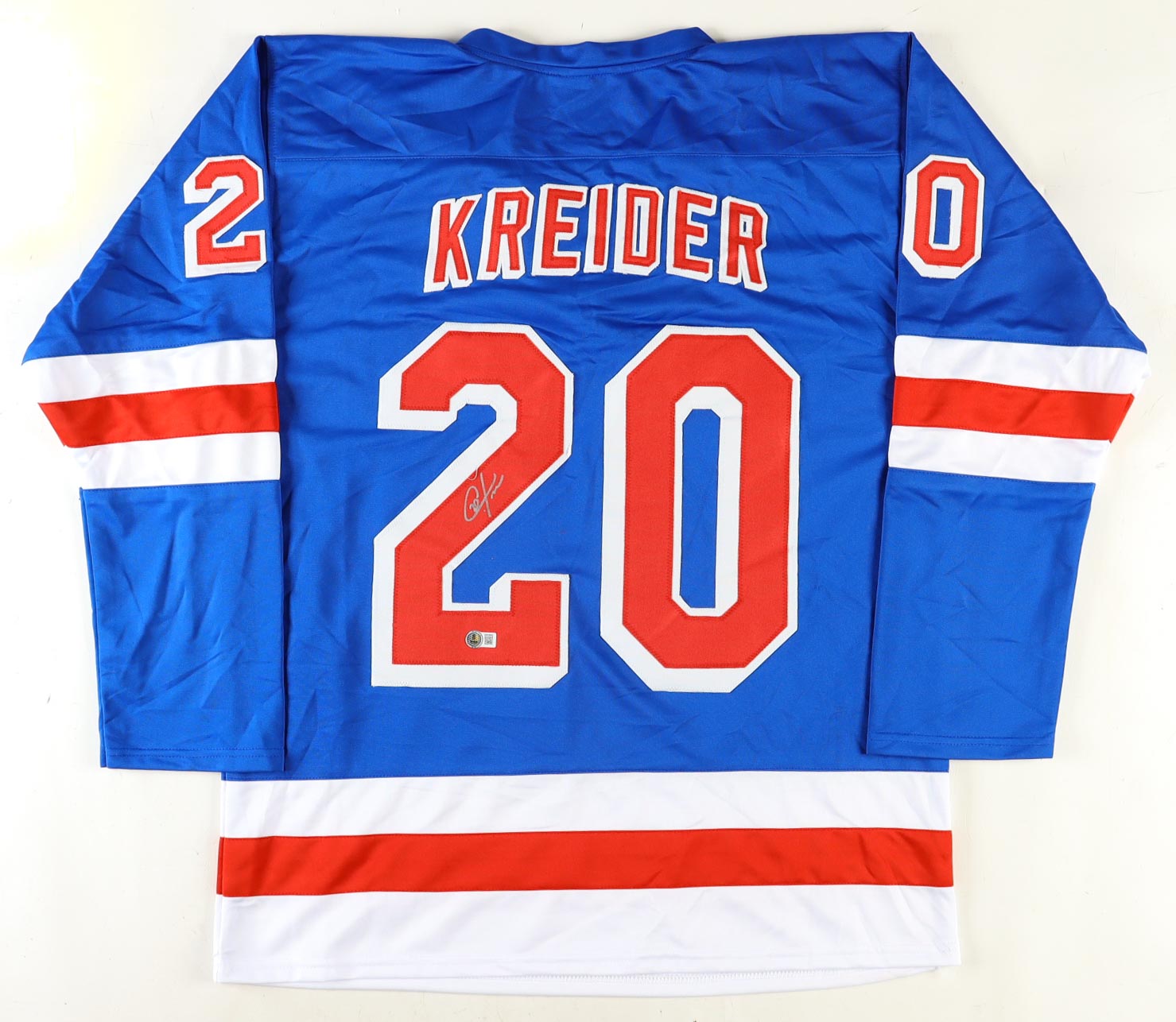 Custom jersey with everything sewn on, size XL. Hand-signed by Chris Kreider (HOF).