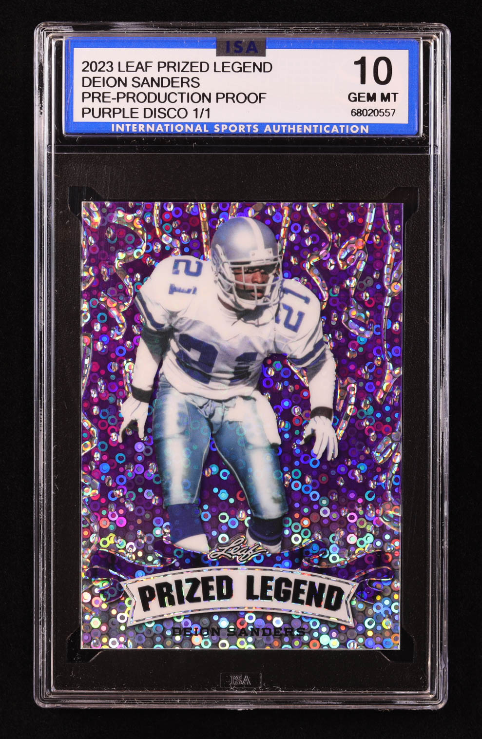 Deion Sanders 2023 Leaf Metal Prized Legend Disco Purple Pre-Production Proof #NNO #1/1 (ISA 10)