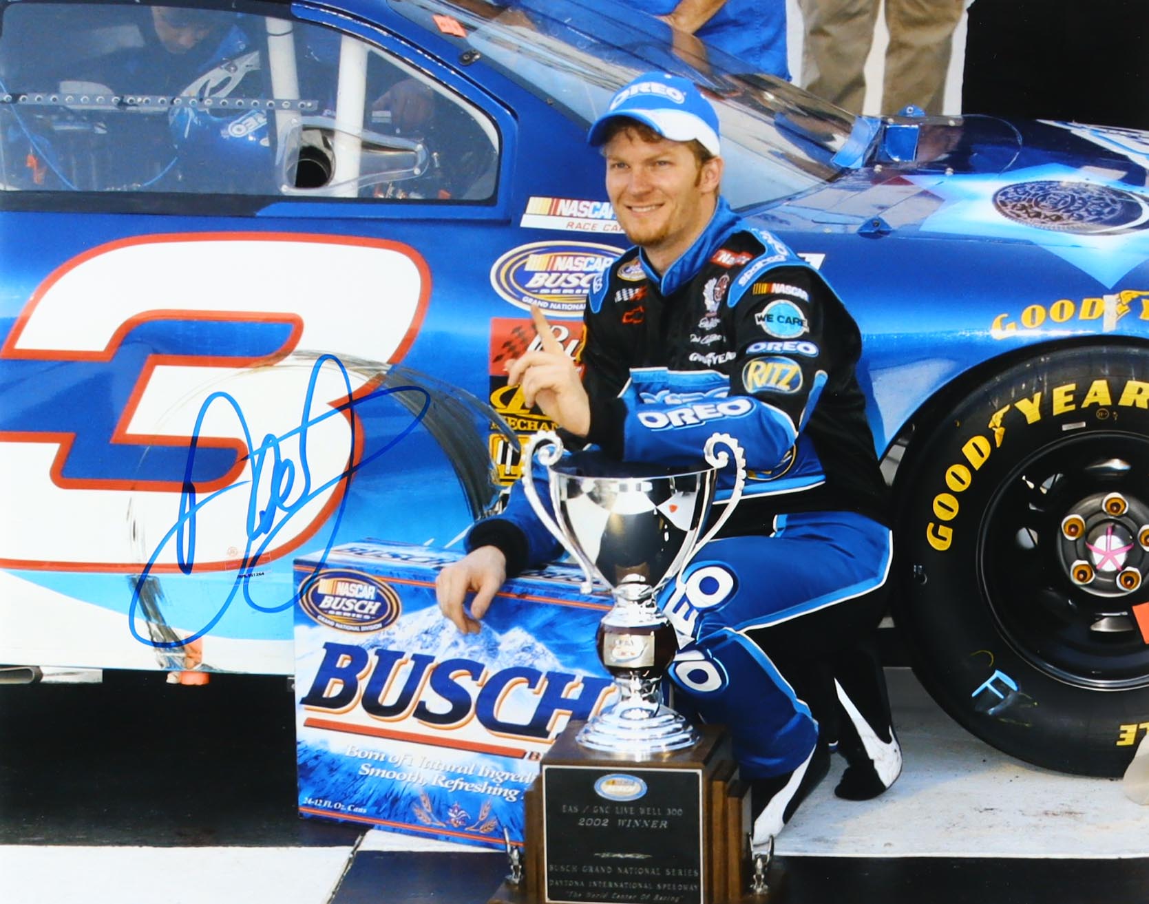 Photo measures 16" x 20" in size and has been hand-signed by Dale Earnhardt Jr. (HOF).