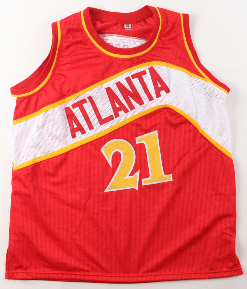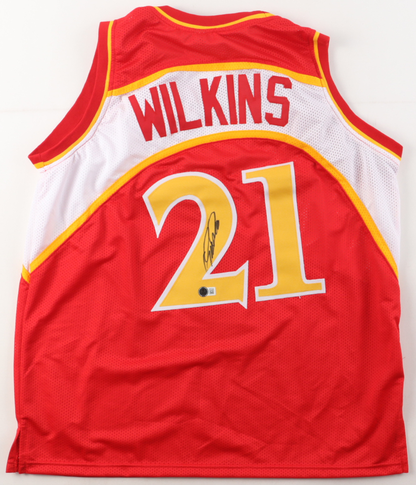 Custom jersey, everything sewn on, size XL. Hand-signed by Dominique Wilkins (HOF).