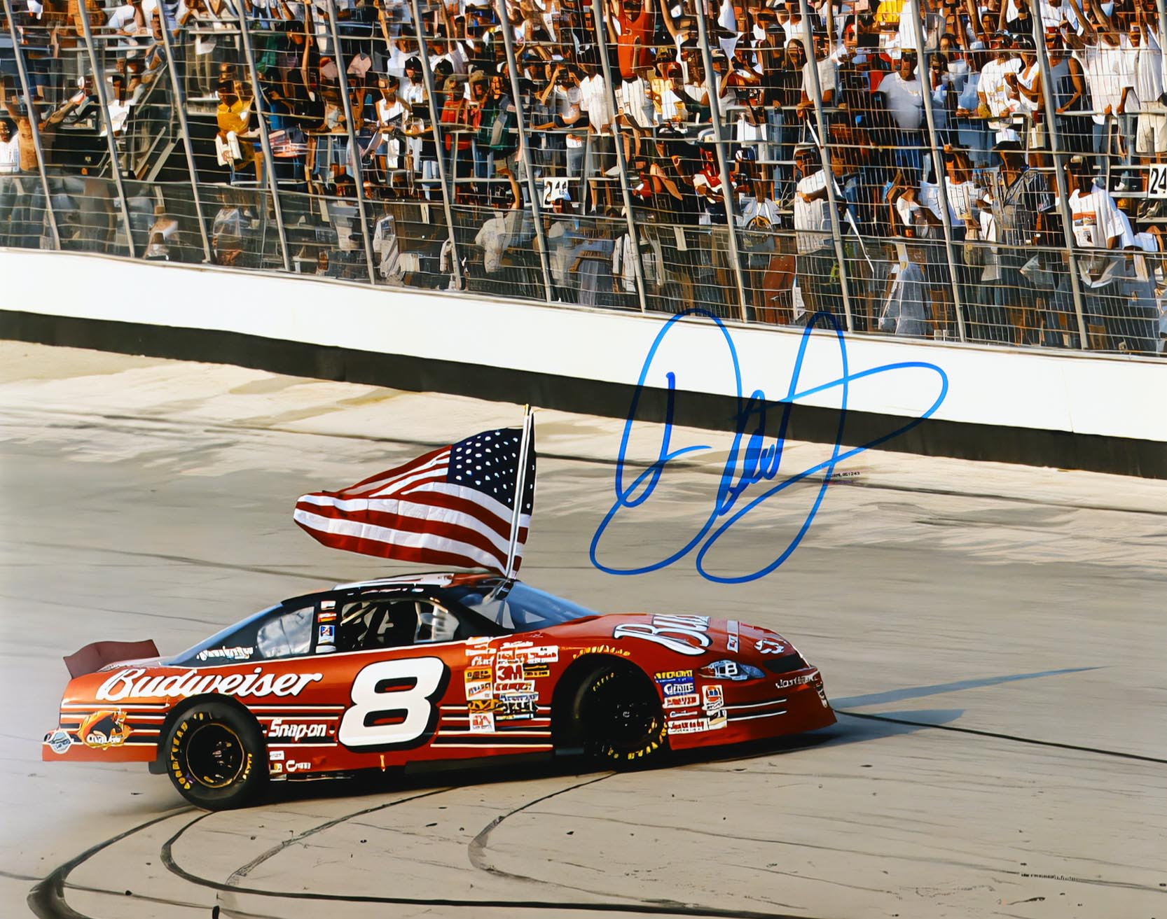 Photo measures 16" x 20" in size and has been hand-signed by Dale Earnhardt Jr. (HOF).