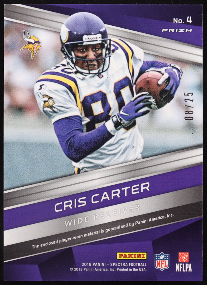 Cris Carter 2018 Panini Spectra Epic Legends Materials Neon Green #4 #08/25
