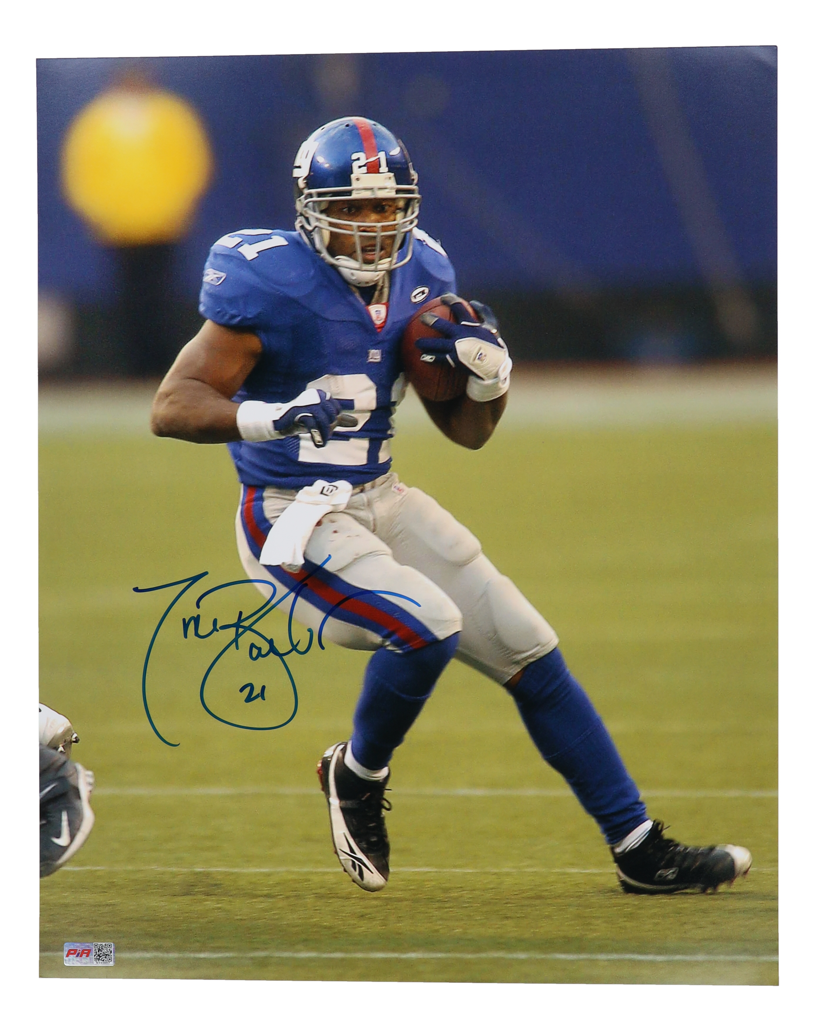 Photo measures 16" x 20" in size and has been hand-signed by Tiki Barber (New York Giants).