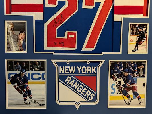 Custom frame measures 34" x 42" in size and features a jersey that has been hand-signed by Alexei Kovalev.