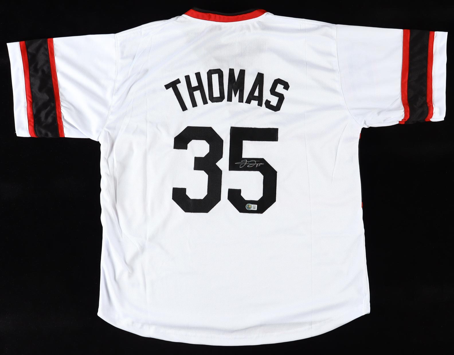 Custom jersey with everything sewn on, size XL. Hand-signed by Frank Thomas (HOF).