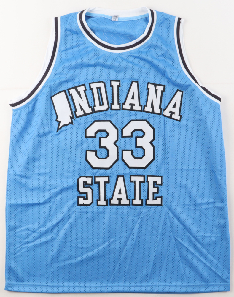 Custom jersey with everything sewn on, size XL. Hand-signed by Larry Bird (HOF).
