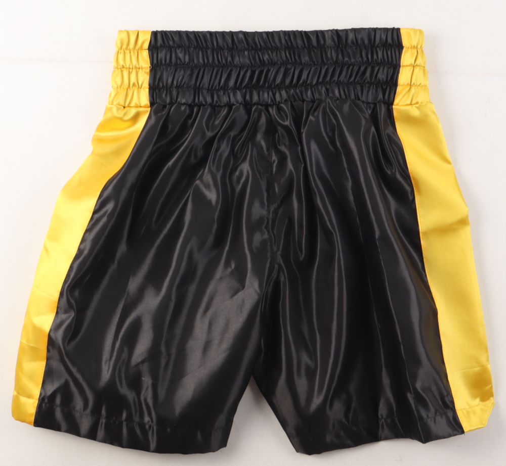 Custom boxing shorts, size XL. Hand-signed by Floyd Mayweather Jr. (HOF).