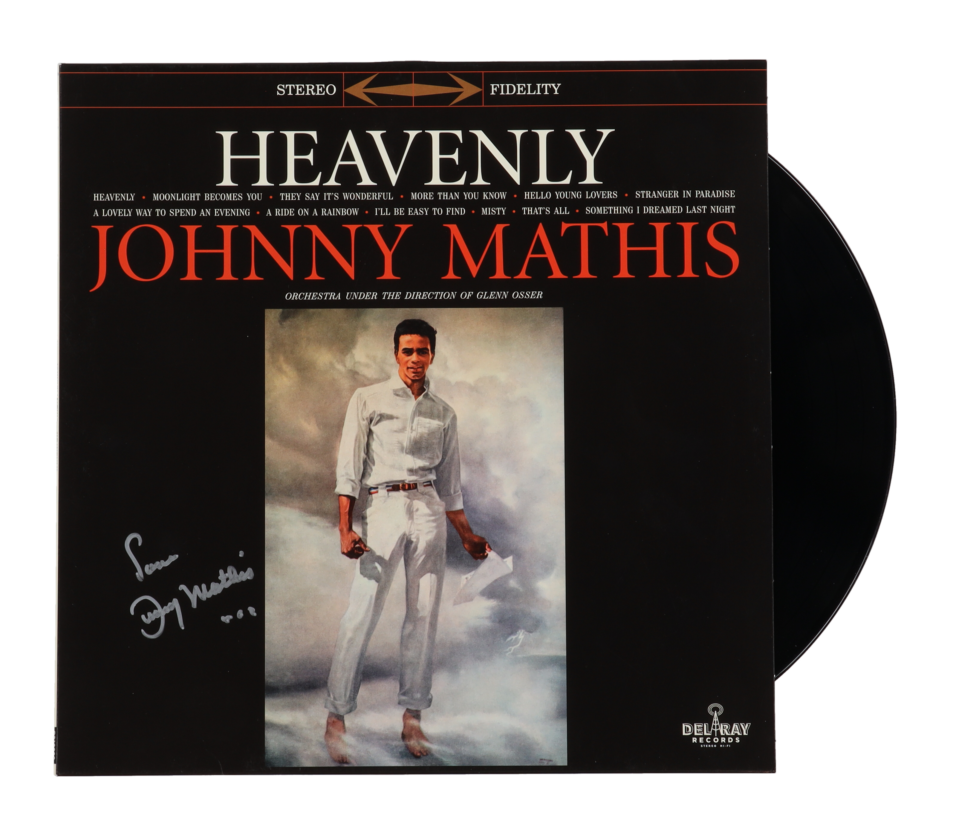 "Heavenly" vinyl record album cover has been hand-signed and inscribed by Johnny Mathis (HOF). Please note, the vinyl record is included.