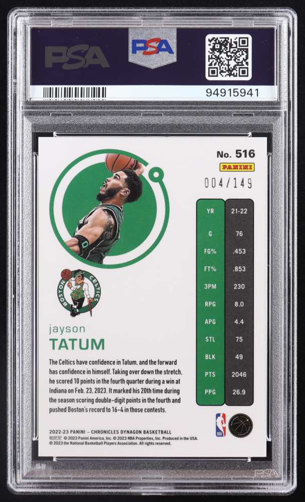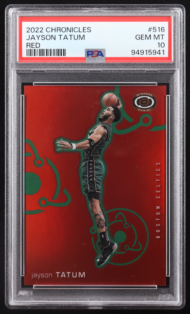 Jayson Tatum 2022-23 Panini Chronicles Red #516 / Dynagon #4/149 (PSA 10)