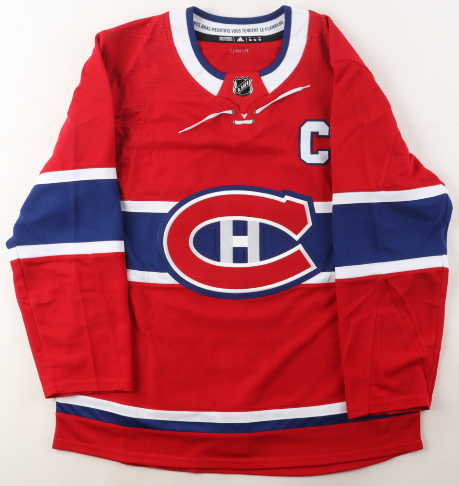 Adidas jersey with everything sewn on, size 50. Has been hand-signed Shea Weber (Montreal Canadiens).