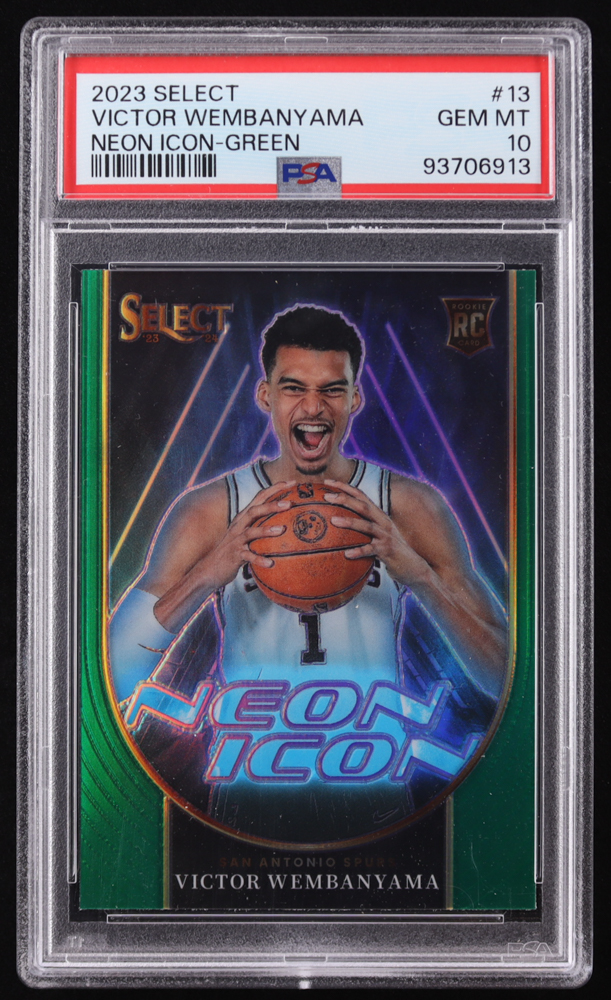 Victor Wembanyama 2023-24 Select Neon Icon Green Prizms #13 RC (PSA 10)