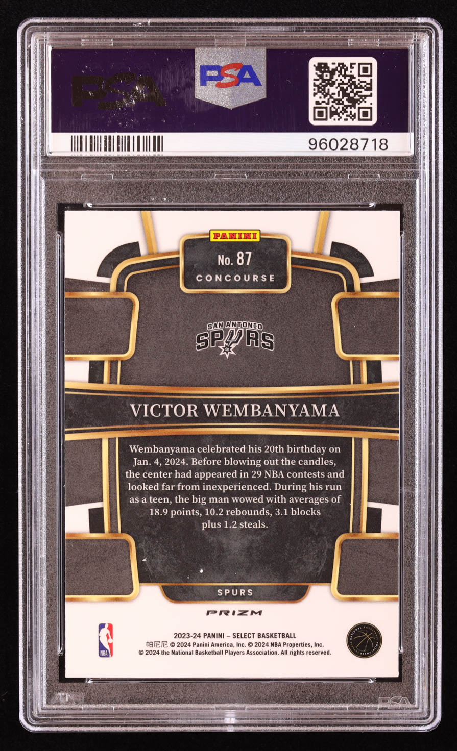 Victor Wembanyama 2023-24 Select Prizms Orange Flash #87 RC (PSA 10)