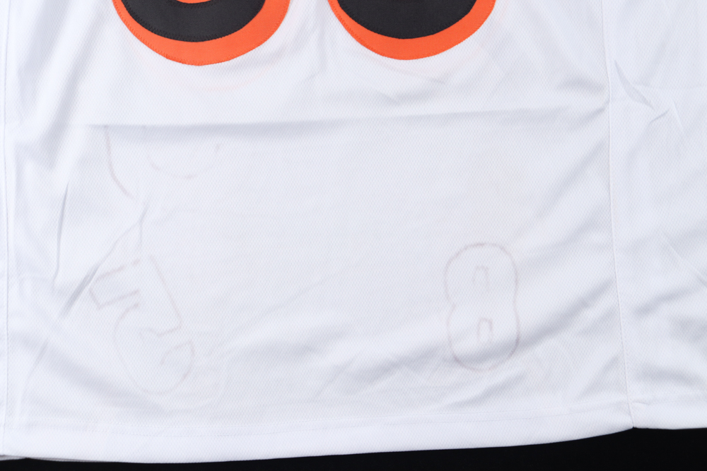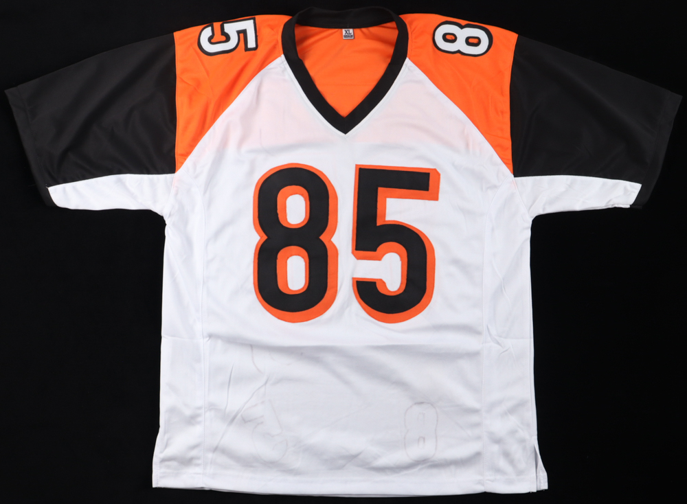 Custom jersey with everything sewn on, size XL. Hand-signed by Chad Johnson. Please note, there is staining at the bottom of the jersey.