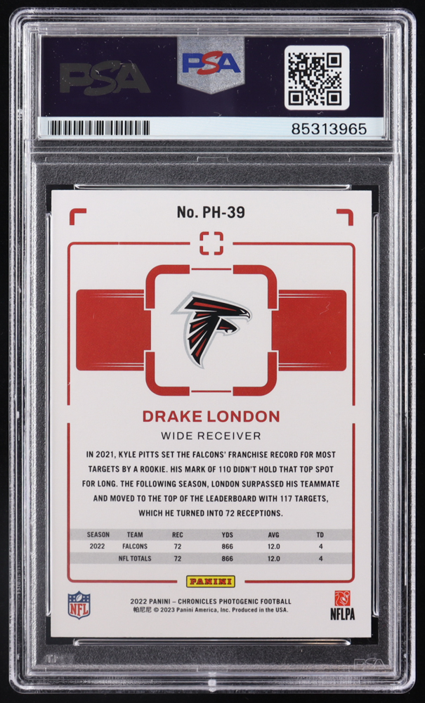 Drake London Signed 2022 Panini Chronicles Photogenic #39 RC (PSA)