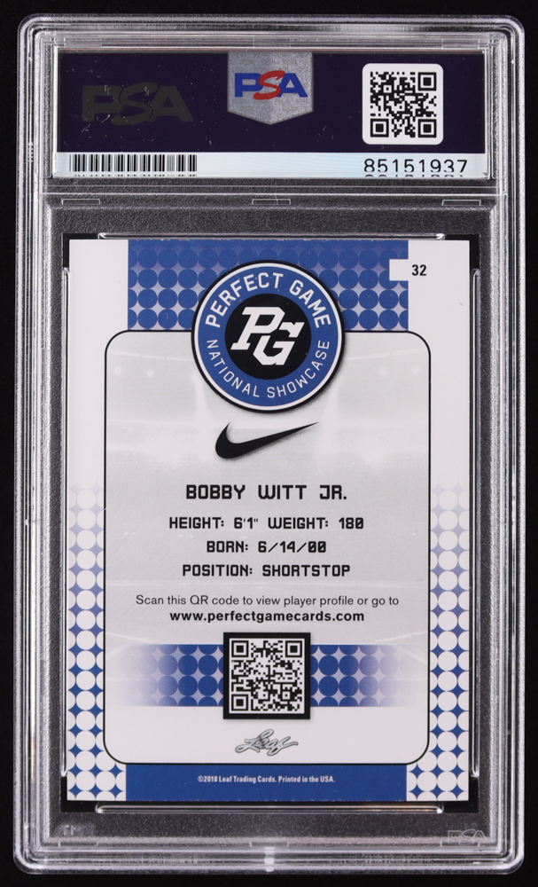 Bobby Witt Jr. Signed 2018 Leaf Perfect Game National Showcase #32 RC (PSA)