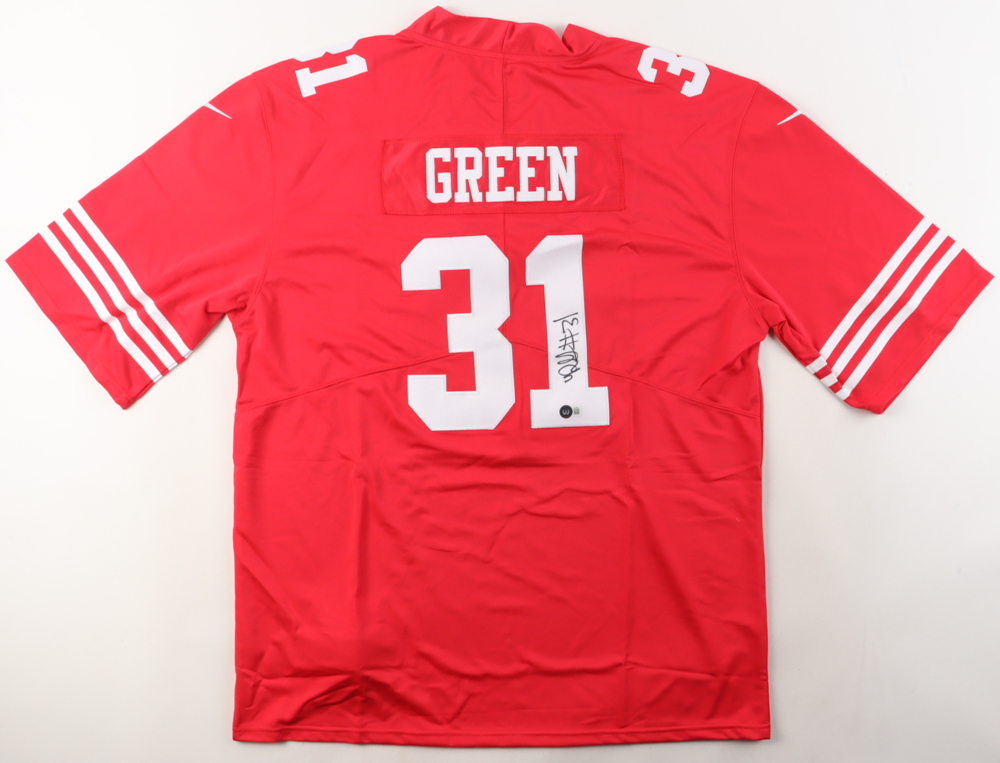 Nike jersey. Everything is sewn on, size XL. Hand-signed by Renardo Green.