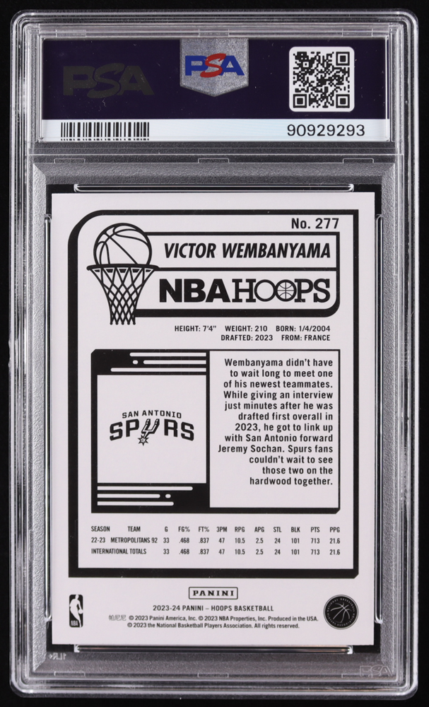 Victor Wembanyama 2023-24 Hoops #277 RC (PSA 10)