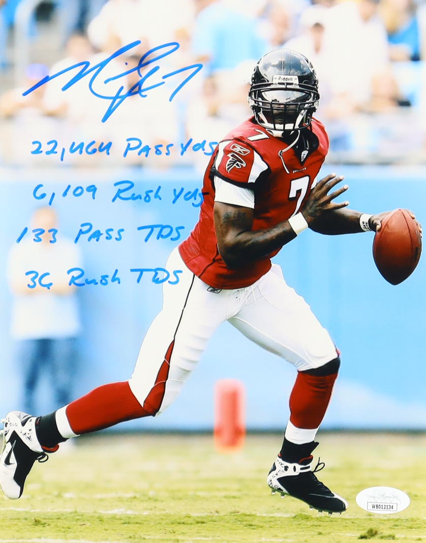 Michael Vick Signed Falcons 8x10 Photo With Career Stat Inscriptions (JSA)
