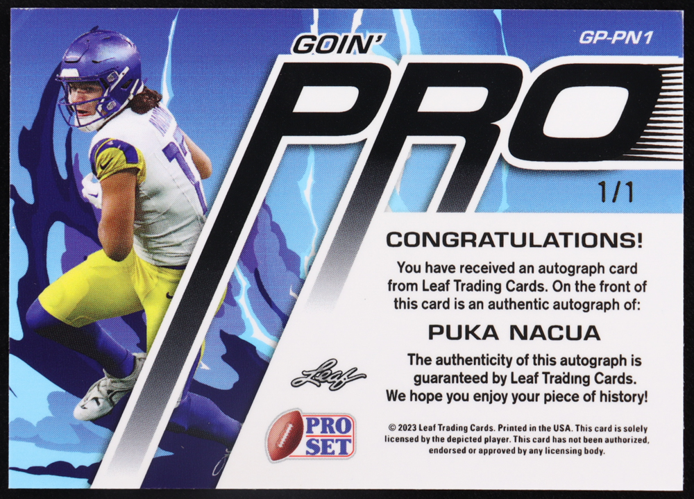 Puka Nacua 2023 Leaf Pro Set Metal Goin? Pro Prismatic Gold #GP-PN1 RC #1/1