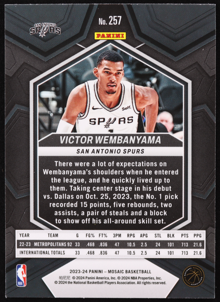 Victor Wembanyama 2023-24 Panini Mosaic #257 RC / NBA Debut