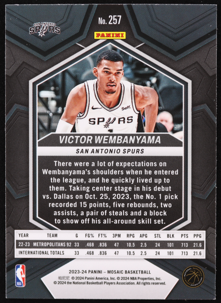Victor Wembanyama 2023-24 Panini Mosaic #257 RC / NBA Debut
