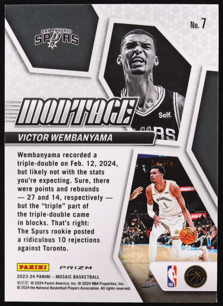 Victor Wembanyama 2023-24 Panini Mosaic Montage Mosaic #7 RC