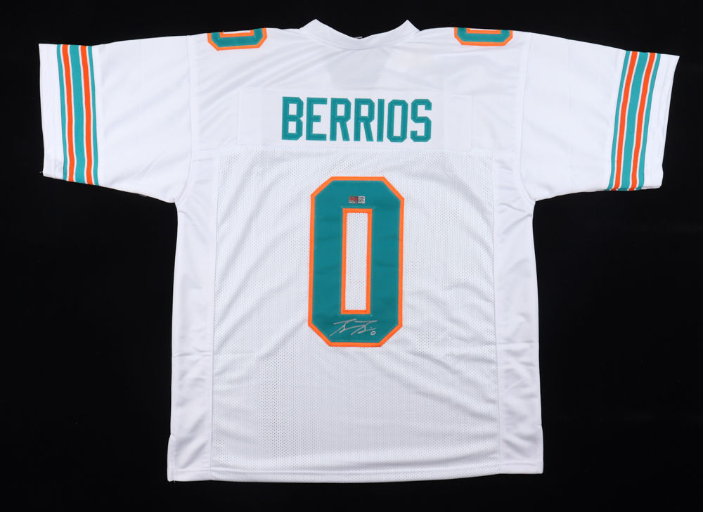 Custom football jersey. Everything sewn on, size XL. Hand-signed by Braxton Berrios.