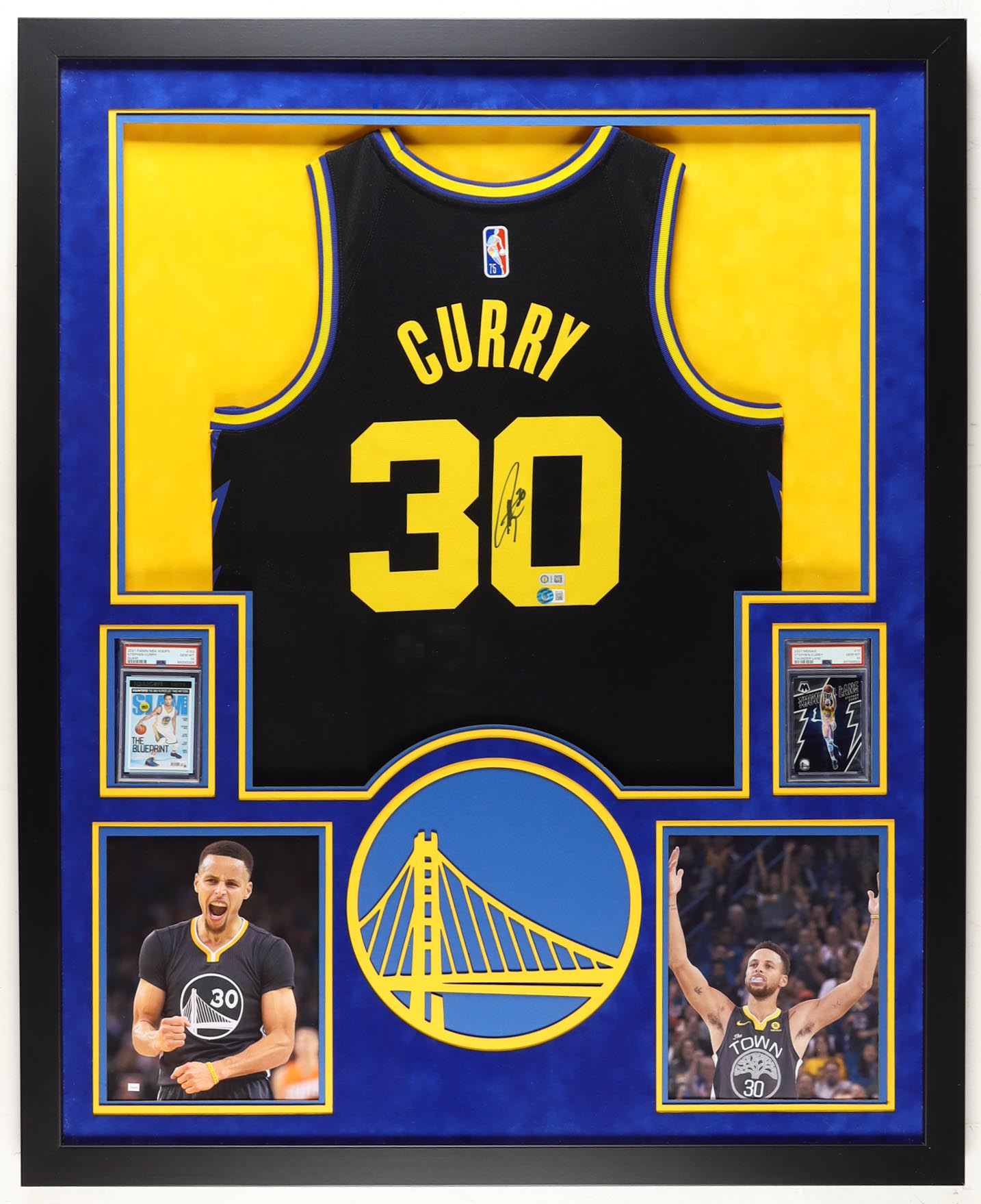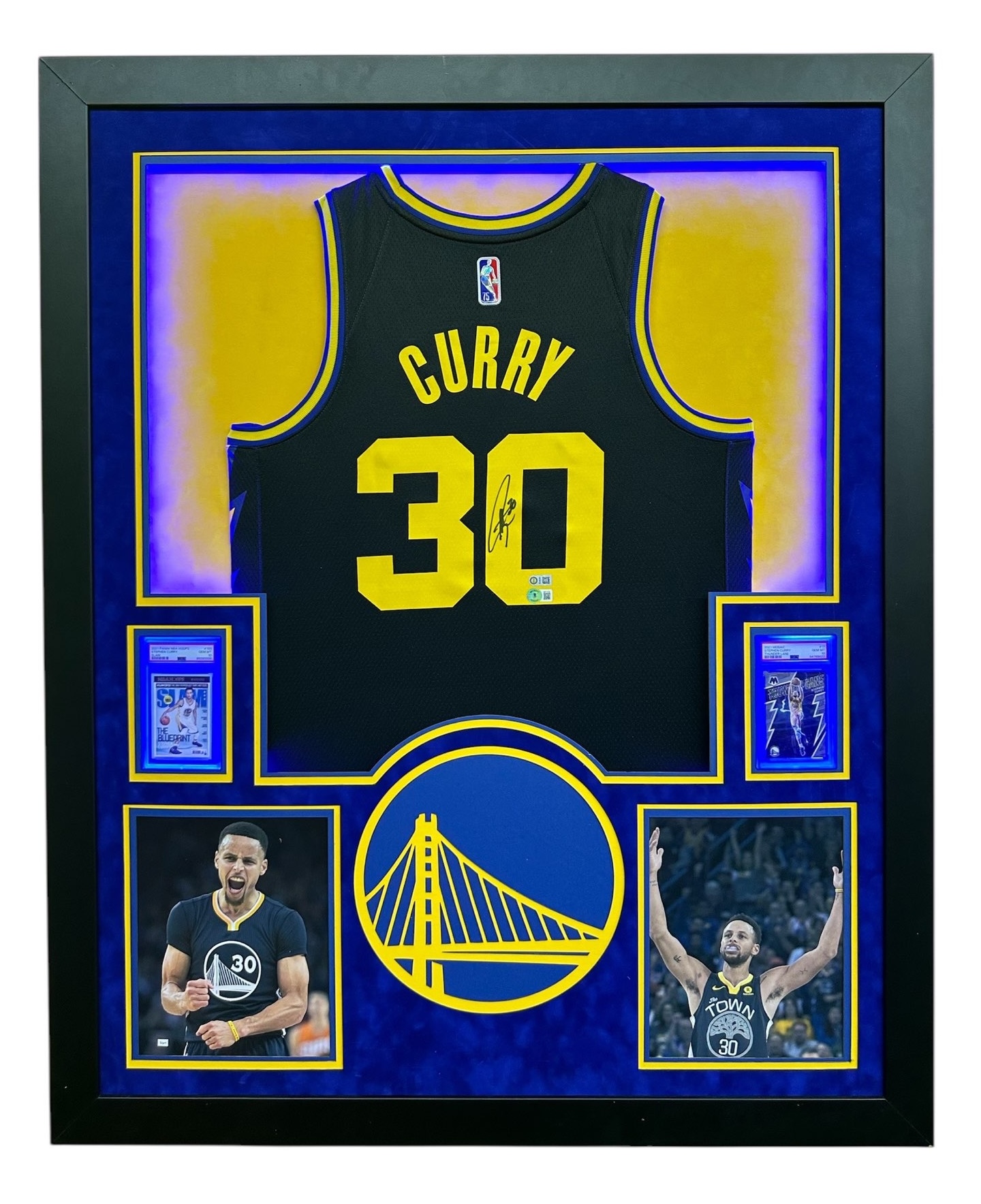 Stephen Curry Signed & Framed Golden State Warriors LED Backlit Jersey Display with PSA 10 Cards (Beckett & USA SM)