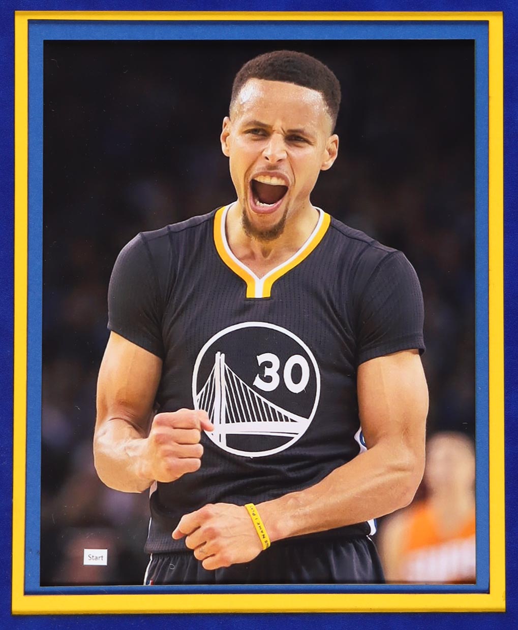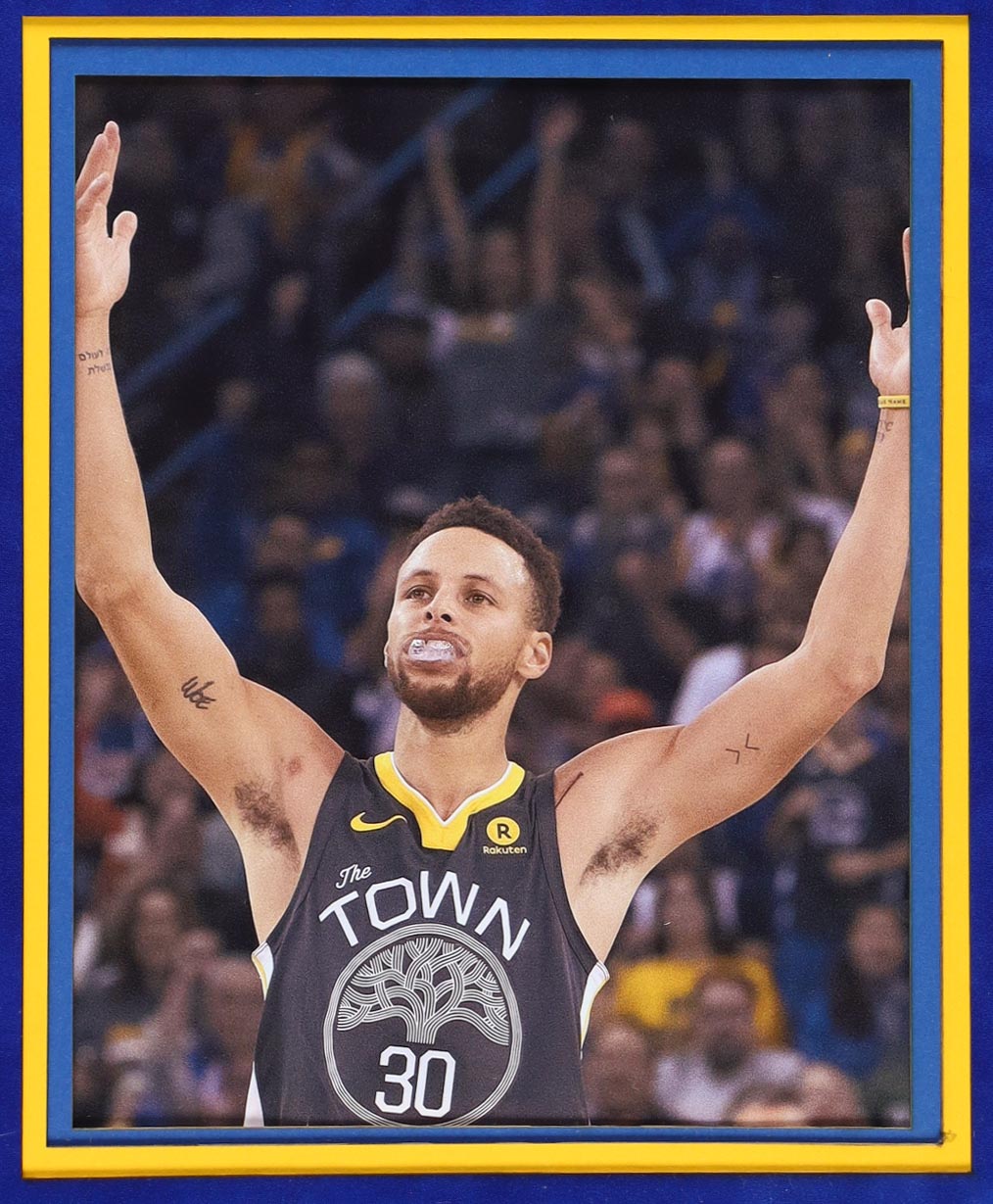 This stunning custom-framed Stephen Curry display measures approximately 35" x 43" and comes with LED backlighting to dramatically showcase the hand-signed Golden State Warriors jersey. The lighting provides an elegant glow that brings the display to life, turning it into a centerpiece for any collection or fan cave. The jersey takes center stage, perfectly capturing the legacy of one of basketball’s greatest players.