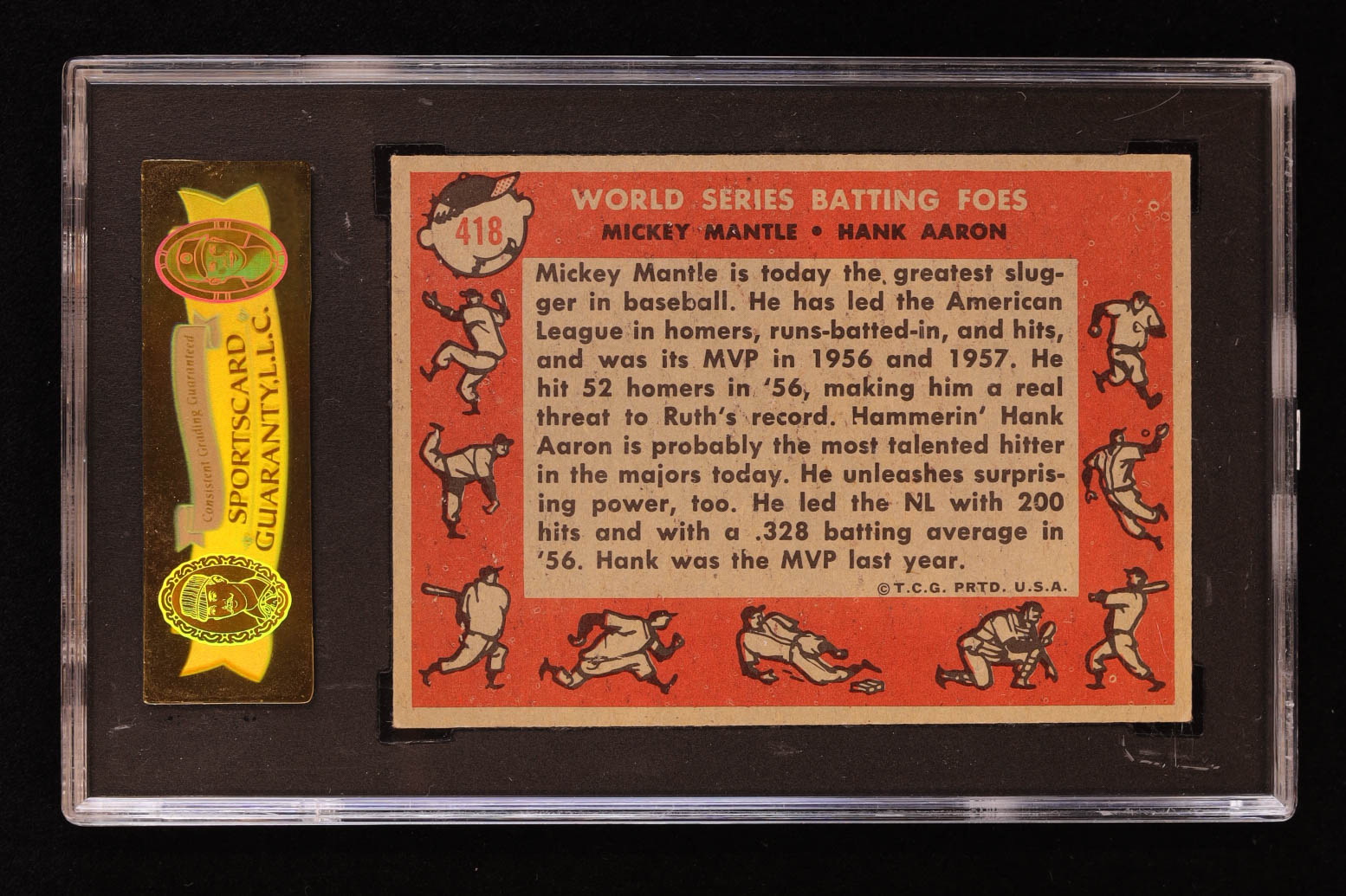 Mickey Mantle / Hank Aaron 1958 Topps #418 World Series Batting Foes (SGC 6)