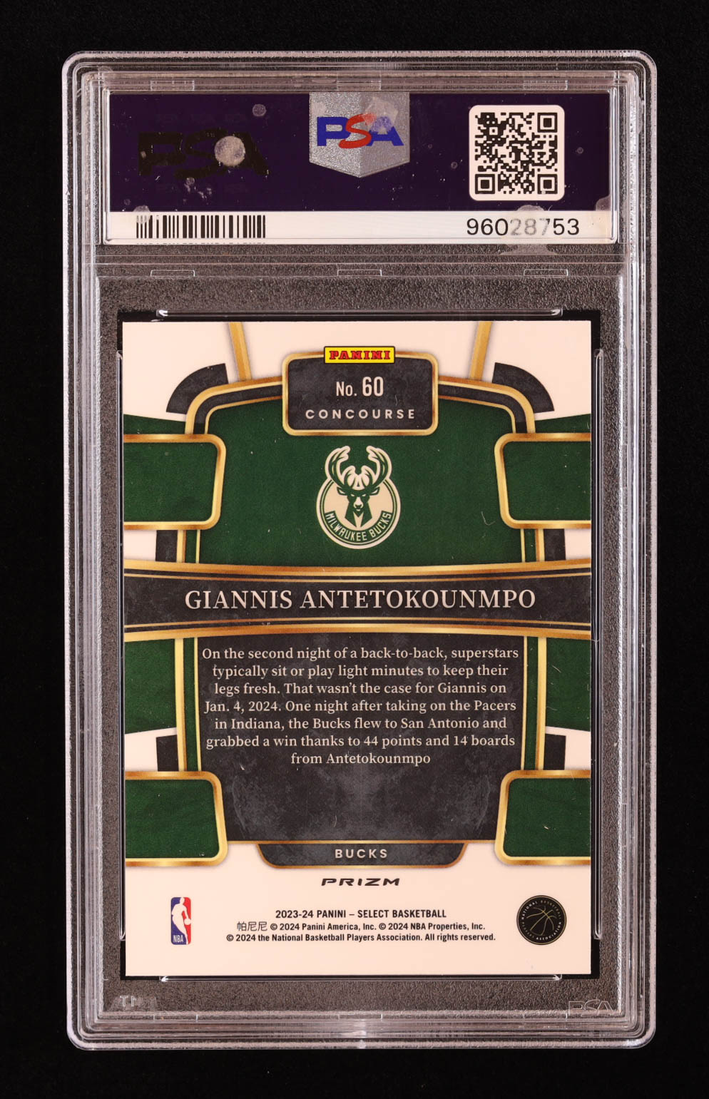 Giannis Antetokounmpo 2023-24 Select Prizms Blue #60 (PSA 10)