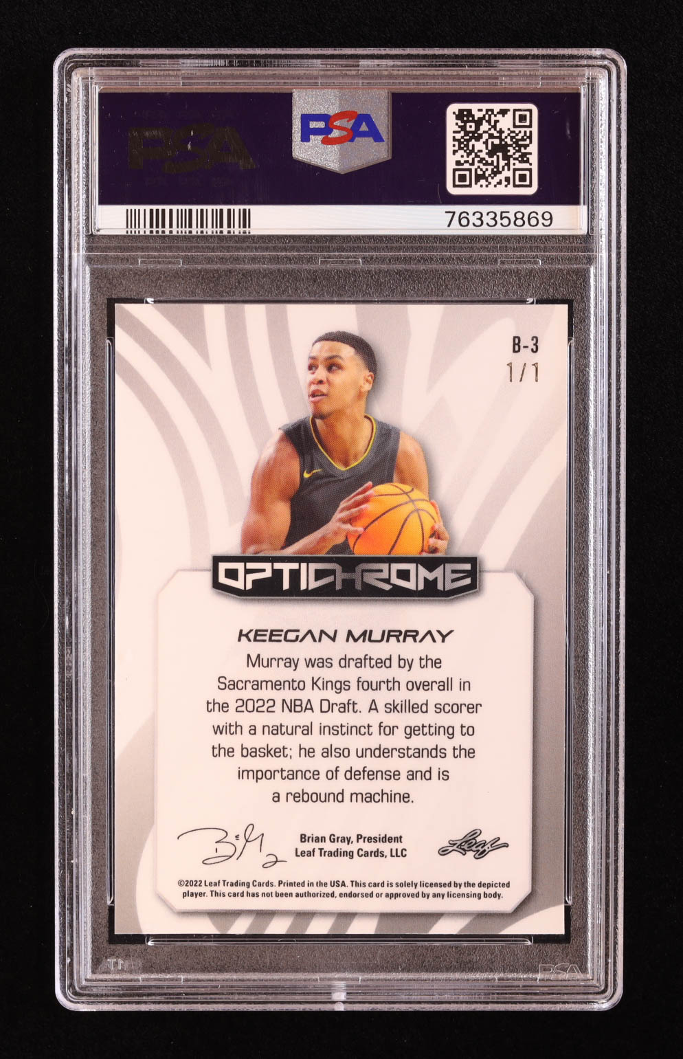 Keegan Murray 2022 Leaf OptiChrome Wave Tiger #B3 RC #1/1 (PSA 9)