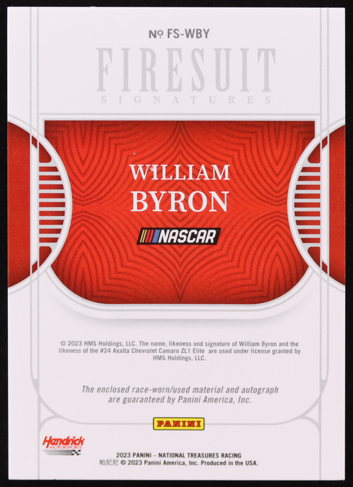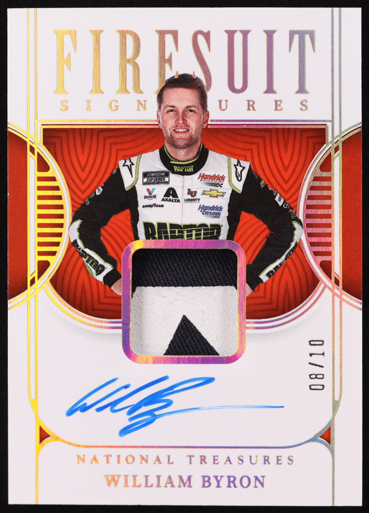 William Byron 2023 Panini National Treasures Firesuit Signatures Holo Gold #1 #08/10