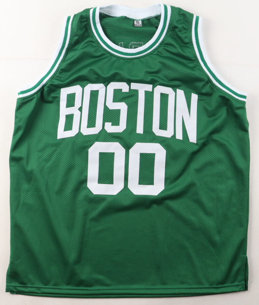 Custom jersey with everything sewn on, size XL. Hand-signed and inscribed by Robert Parish (HOF).