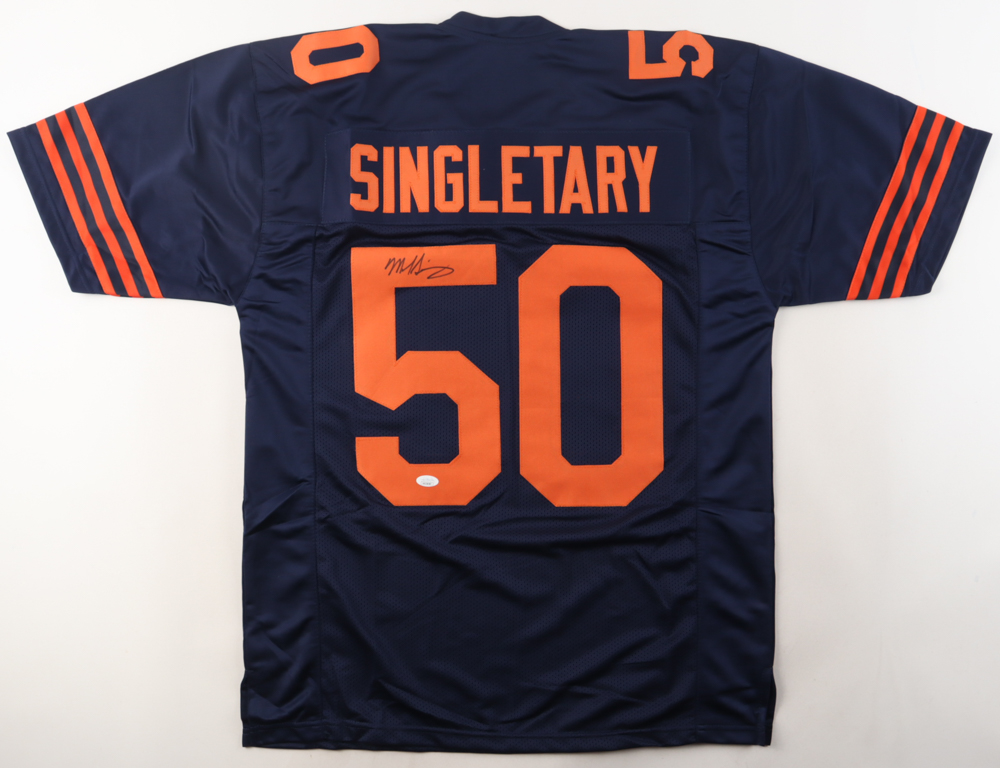 Custom jersey with everything sewn on, size XL. Hand-signed by Mike Singletary (HOF).