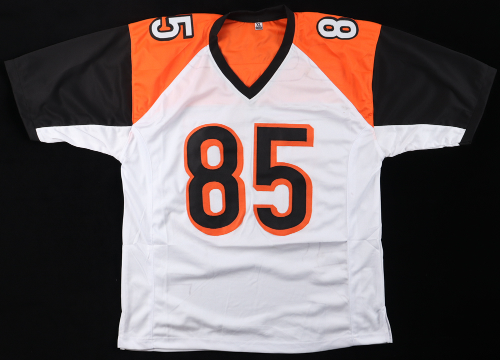 Custom jersey. Everything is sewn on, size XL. Hand-signed by Chad "Ochocinco" Johnson. Please note, there is staining at the on the shoulders and bottom of the jersey. See photos regarding the condition of the item.