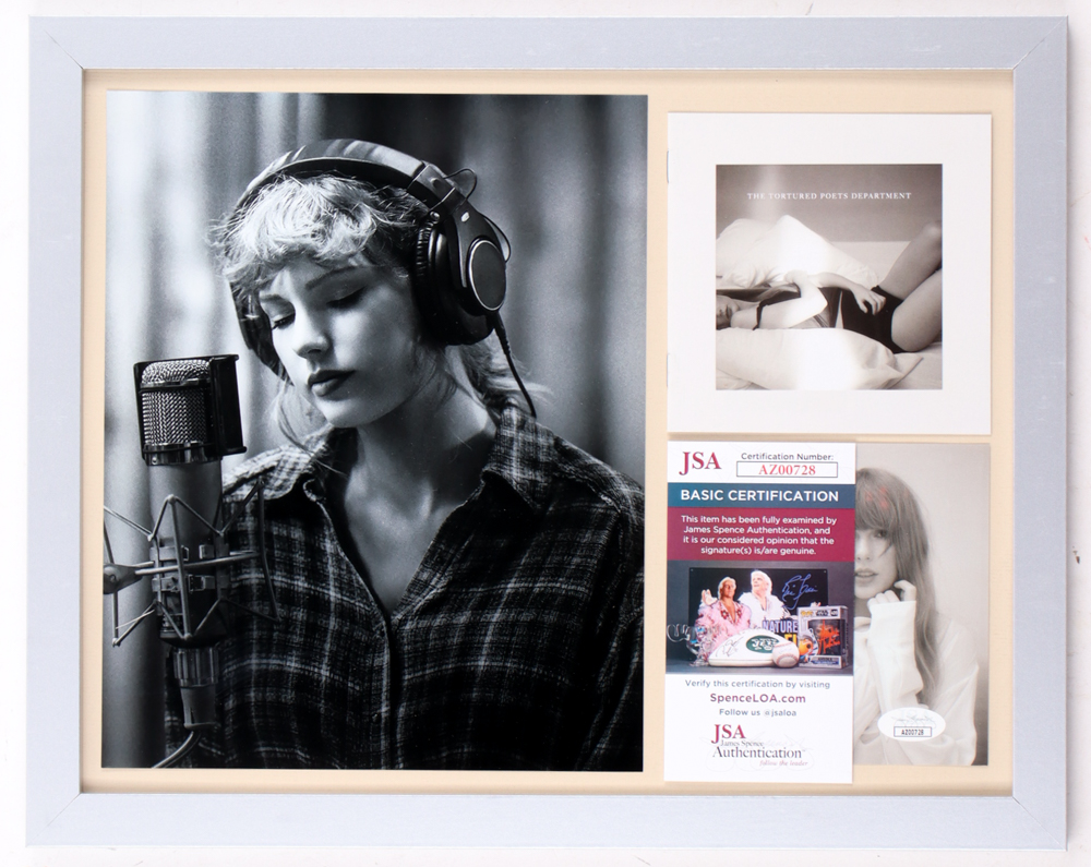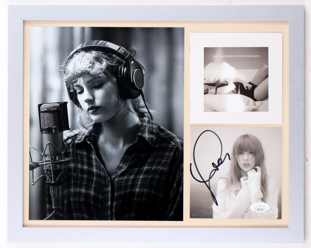 Custom frame measures approximately 12.25" x 15.25" in size. Features a "The Torture Poets Department" CD insert that has been hand-signed by Taylor Swift. The display also includes the disc as shown. Please note, there is scuffing on the frame.