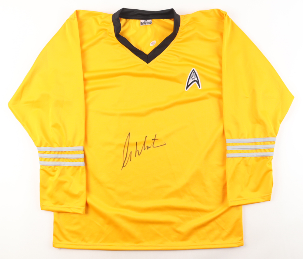 Custom Star Trek uniform. Everything sewn on, size XL. Jersey has been hand-signed by William Shatner (Captain James T. Kirk).