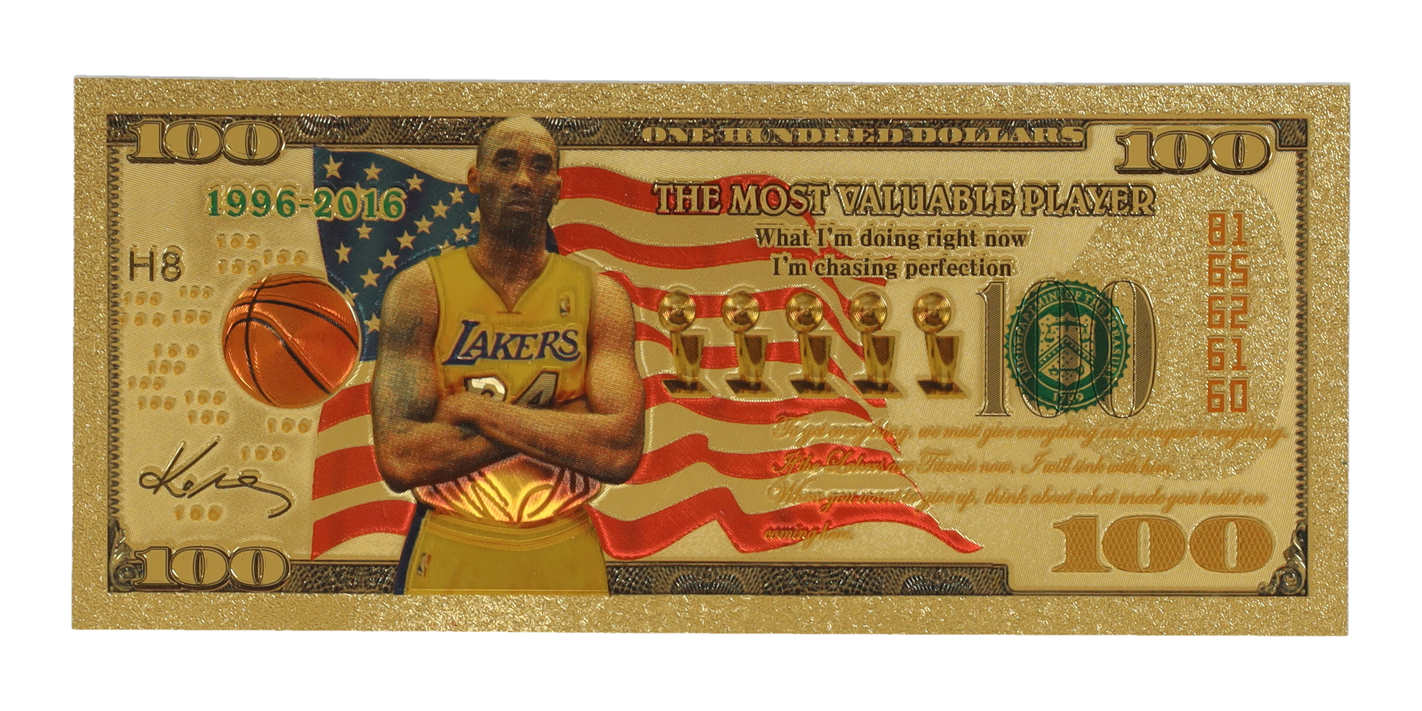 Kobe Bryant "The Most Valuable Player" 24kt Gold Commemorative $100 Bill