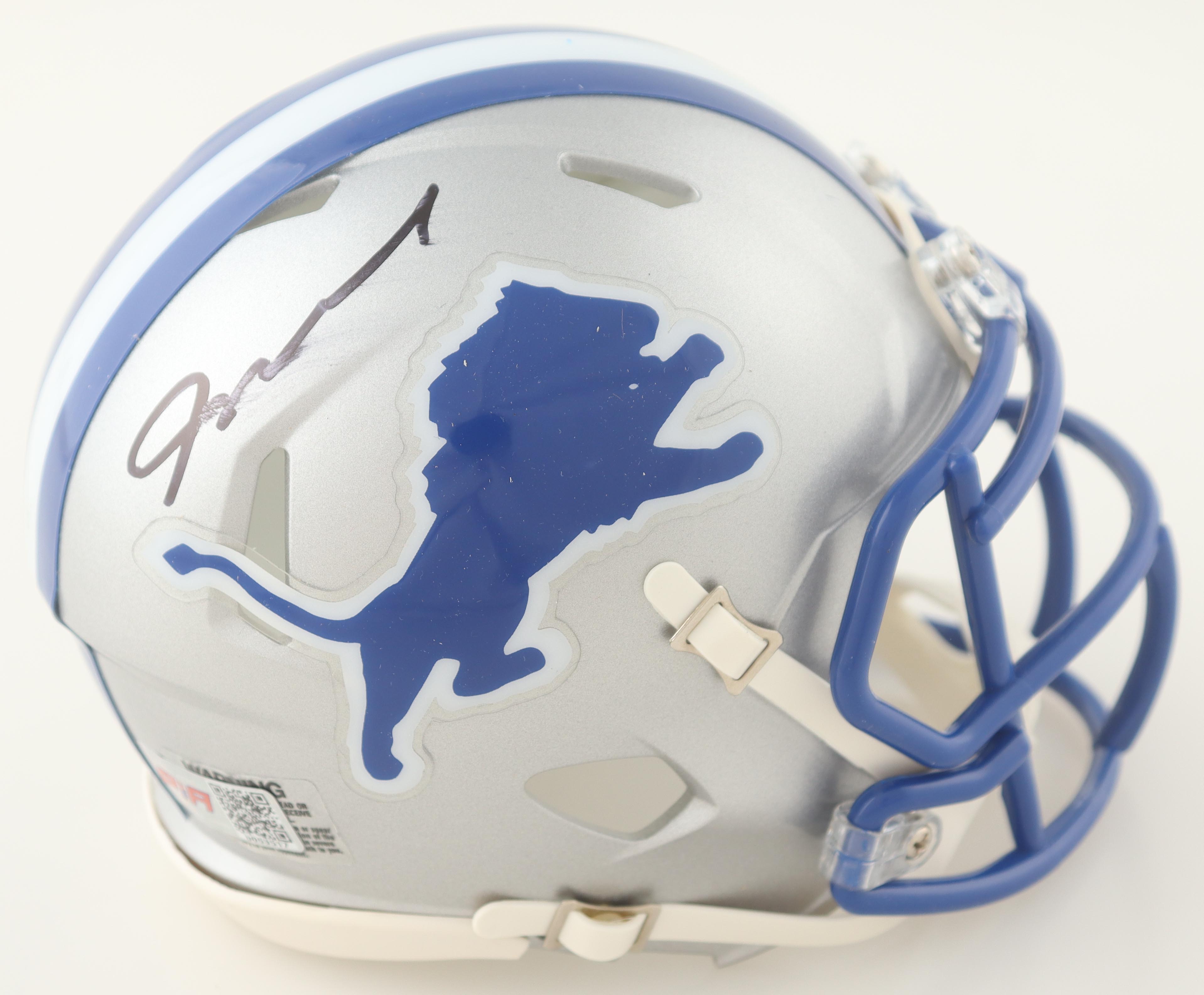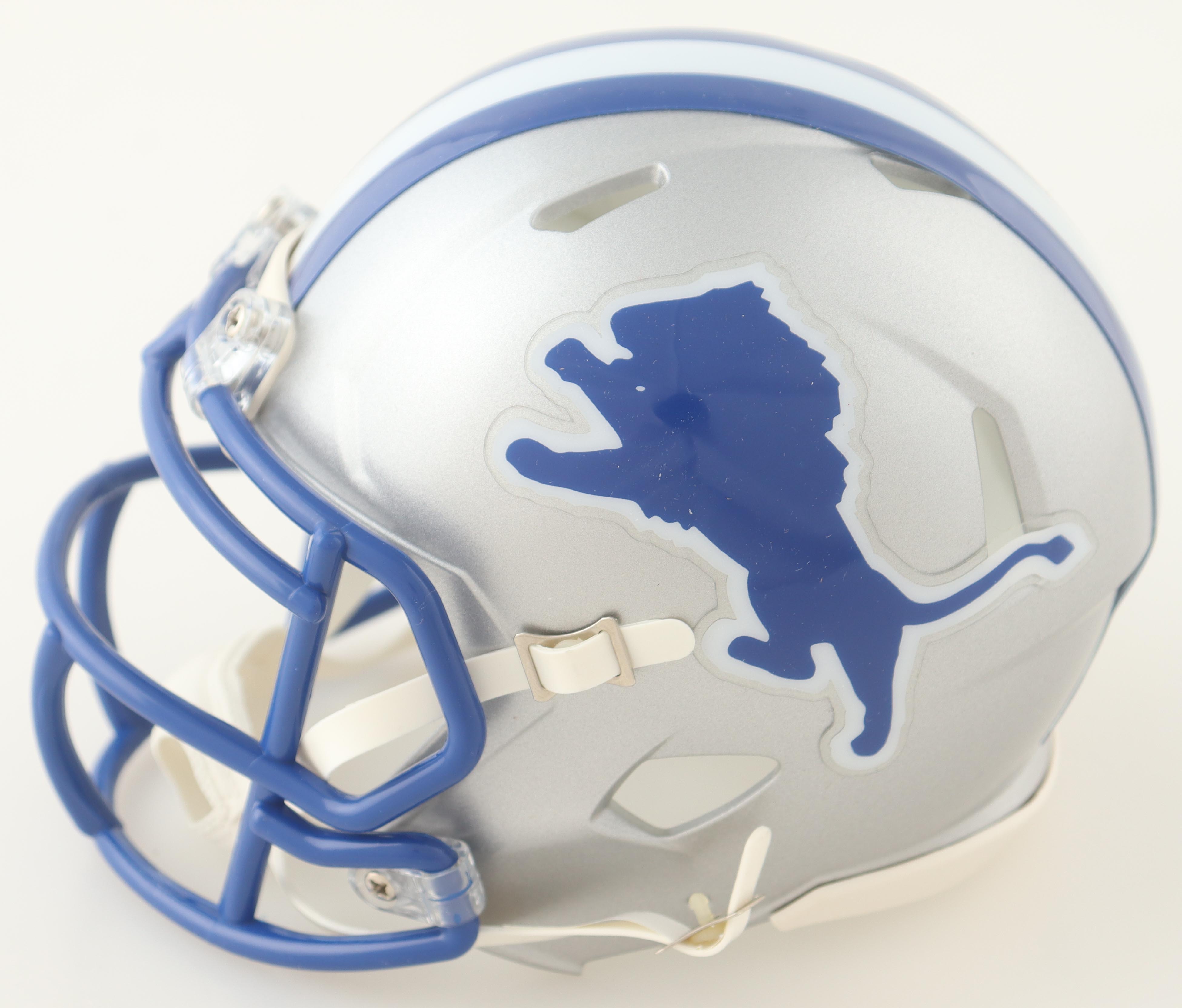 Riddell Detroit Lions Speed Mini Helmet has been hand-signed by Jameson Williams. Please note, the signature is smudged.