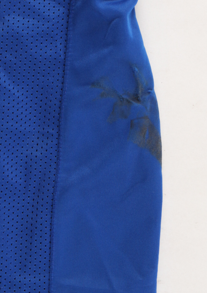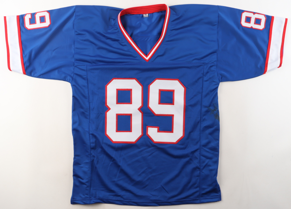 Custom football jersey. Everything sewn on, size XL. Hand-signed by Steve Tasker. Please note, there is staining on the left side of the jersey and near the hologram.