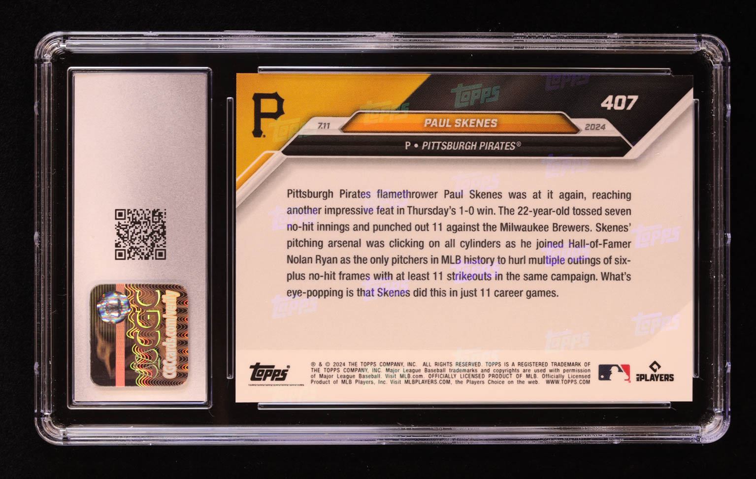 Paul Skenes 2024 Topps Now #407 RC (CGC 10)