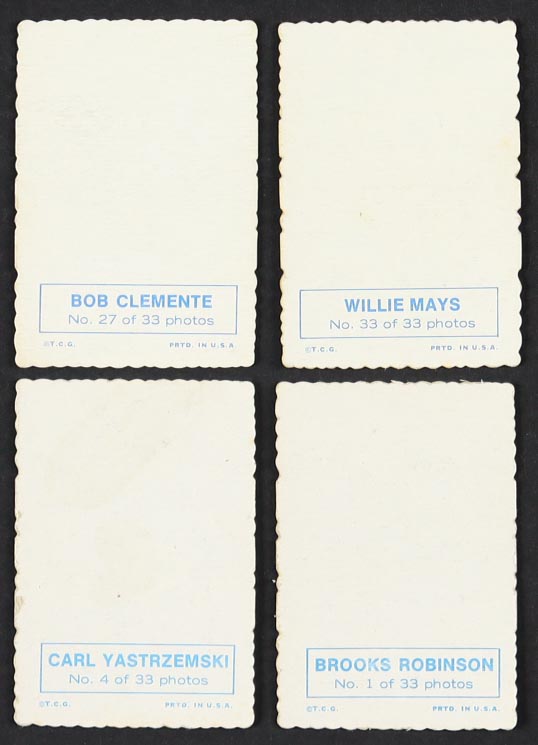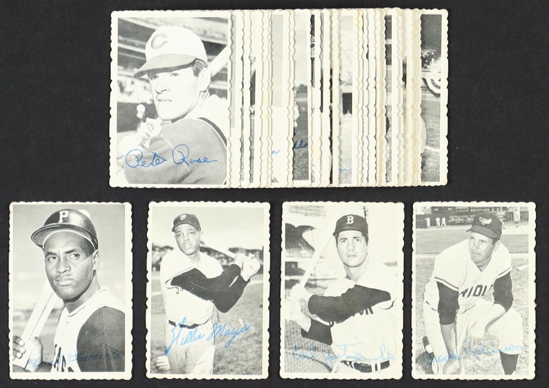 1969 Topps Deckle Edge Complete Set of (33) Baseball Cards with Willie Mays #33, Roberto Clemente #27, Carl Yastrzemski #4, Brooks Robinson #1