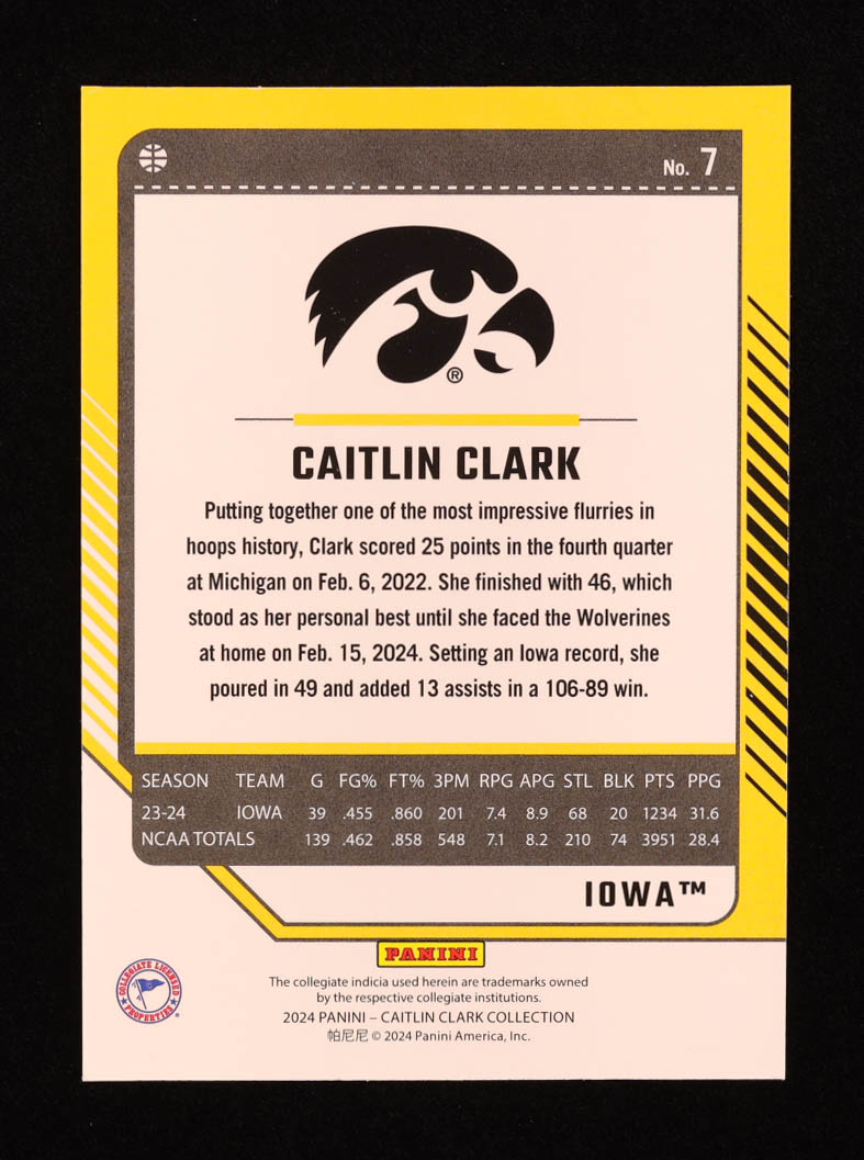 Caitlin Clark 2024 Panini Caitlin Clark Collection Donruss #7 RC