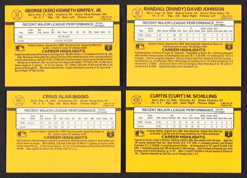 1989 Donruss Complete Set of (660) Baseball Cards with Ken Griffey Jr. #33 RC, Craig Biggio #561, Curt Schilling #635, Randy Johnson #42